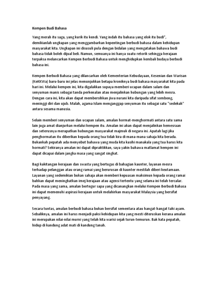 160 Contoh Karangan SPM Bahasa Malaysia Sememangnya buku berkualiti dan mantap untuk pembelajaran yang berkesan bagi membantu murid menghadapi Kertas 1 SPM Bahasa Malaysia. Mereka tidak sedar bahawa nilai tersebut penting diamalkan oleh setiap insan untuk membentuk satu masyarakat harmoni. Huraikan pendapat anda tentang ciri-ciri masyarakat penyayang.